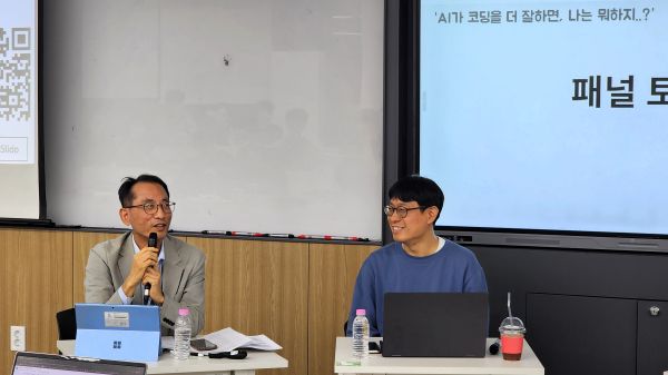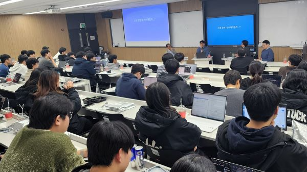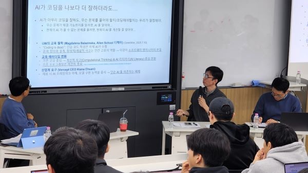 On Tuesday, November 11, the School of Computer Science and Electrical Engineering (CSEE) at Handong University held a talk show under the theme “If AI codes better than I do, what should I do?” The event was organized to provide an opportunity for undergraduate students to reflect together on the meaning of their major and their career direction in the rapidly changing era of AI, and to share insights about the roles of AI technology and human experts.